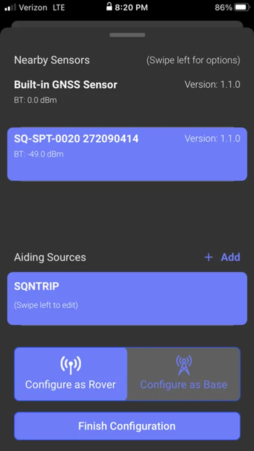 Note: Centimeter-level accuracy requires a SitePoint RTK GNSS external sensor and local NTRIP aiding source.