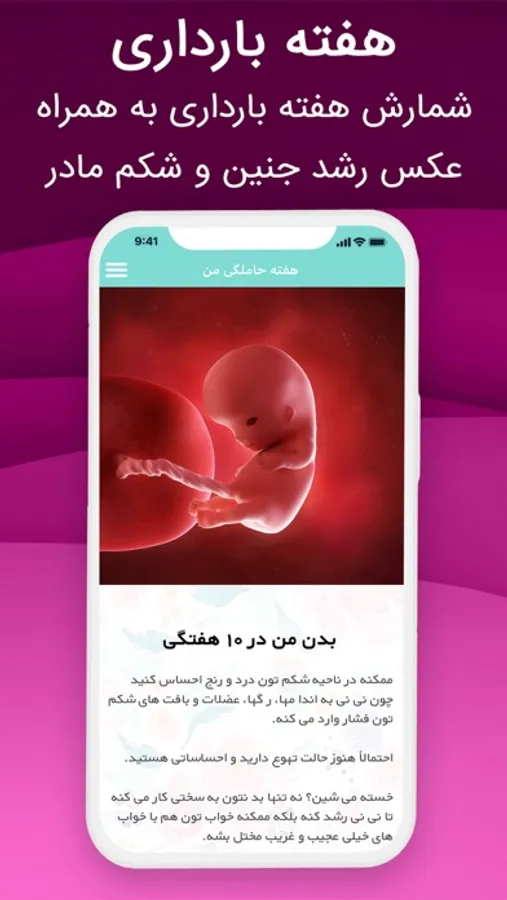 - اطلاعات هفتگی در مورد بدن شما و جنین