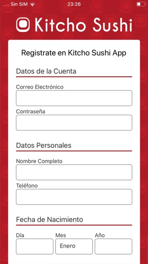 • Contraseña: La contraseña que proporcionas esta encriptada, por lo que sólo tú sabes cuál es, ni Kitcho Sushi ni nadie tiene acceso a ella.