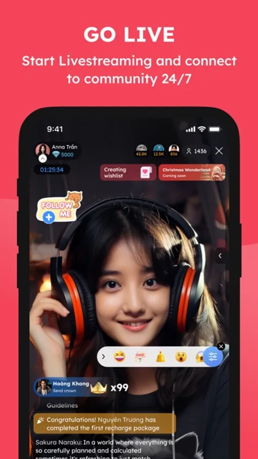 NCT LIVE is a live streaming application designed for streamers, where you can live stream your random moments and interact with fans on the NCT (NhacCuaTui) app.