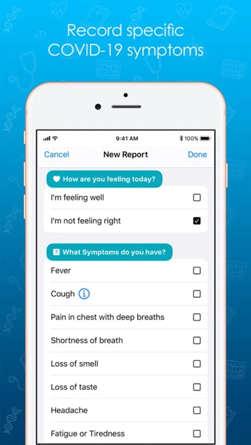 We have a well-researched list of COVID-19 related symptoms which can be tracked.