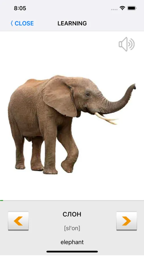 - Learning the alphabet, parts of speech, such as nouns, adjectives, verbs with phonetic transcription through flashcards and sound accompaniment by native speaker.