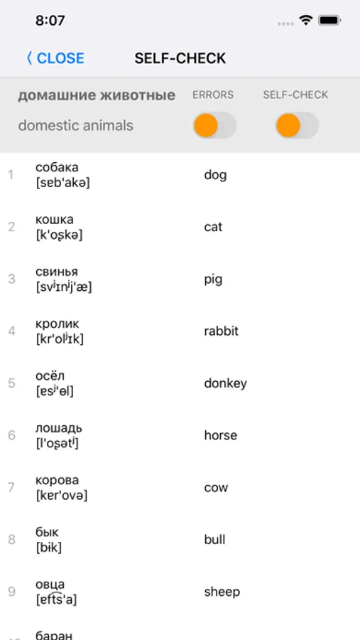- Testing of the knowledge of the words happens through fun and simple tests: