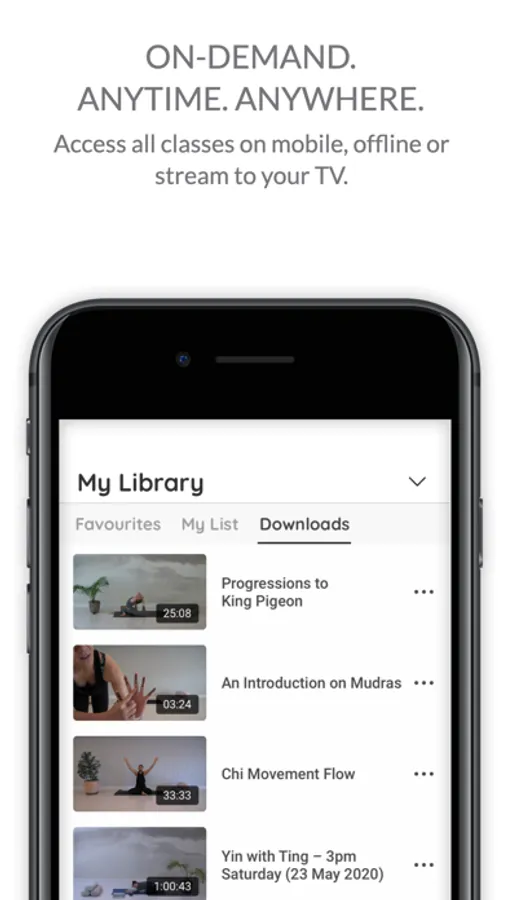 Access our classes on demand, at any time, and wherever you are. Our classes are accessible on iOS mobile devices, and can be easily streamed to any Smart TV or via streaming media boxes such as Apple TV and Chromecast