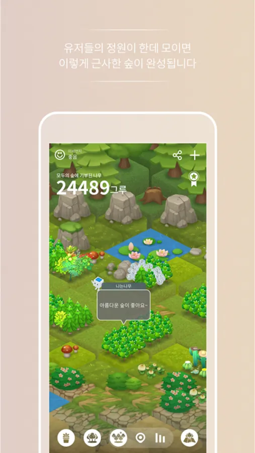 태양의 숲 게임은 태양광 에너지로 묘목을 키워 숲을 조성하는