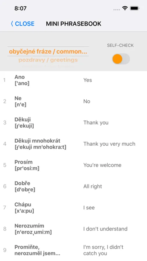 - Testing of the knowledge of the words happens through fun and simple tests: