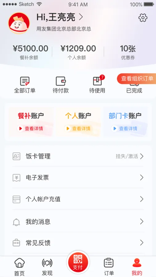 用友餐饮云是面向企业员工提供餐补用餐的APP。