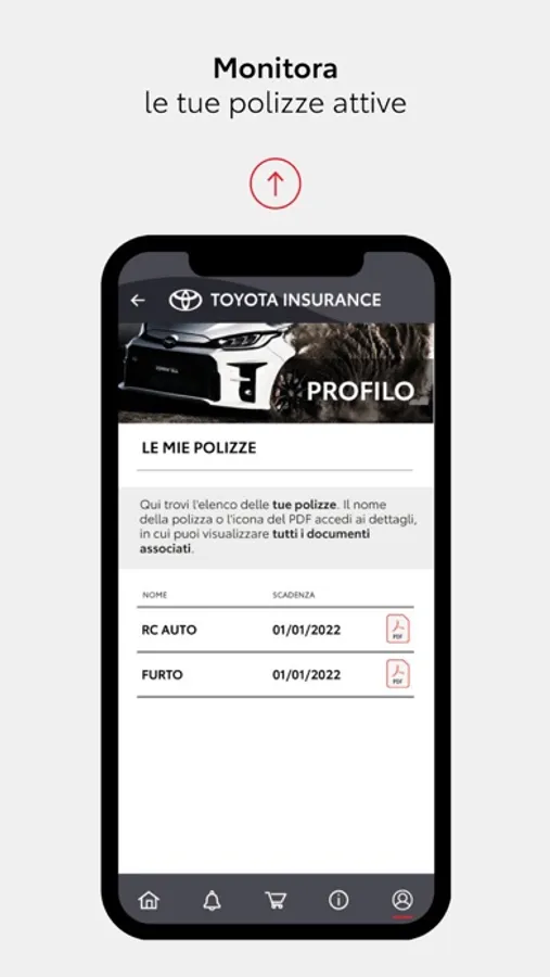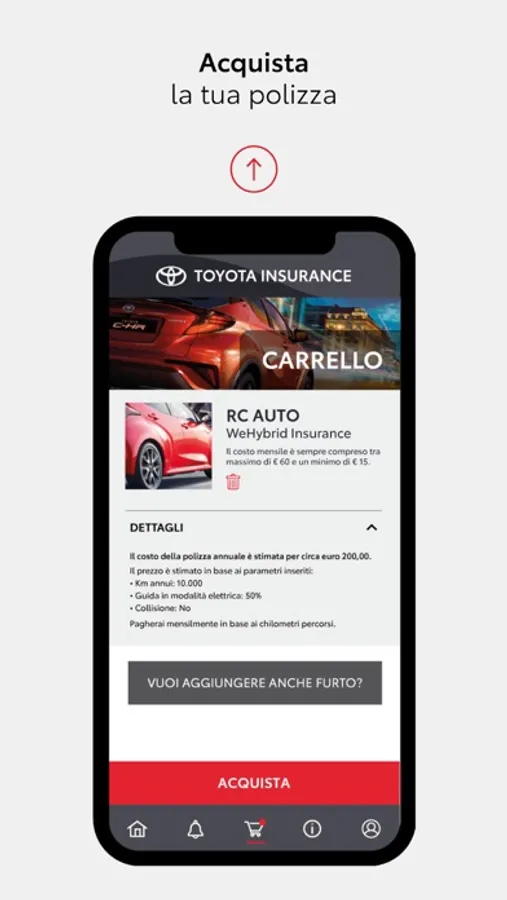I prodotti assicurativi Toyota proteggono la tua auto da ogni imprevisto. Perché la tua Toyota merita soltanto il meglio. Acquista la polizza che più si adatta alla tue esigenze.