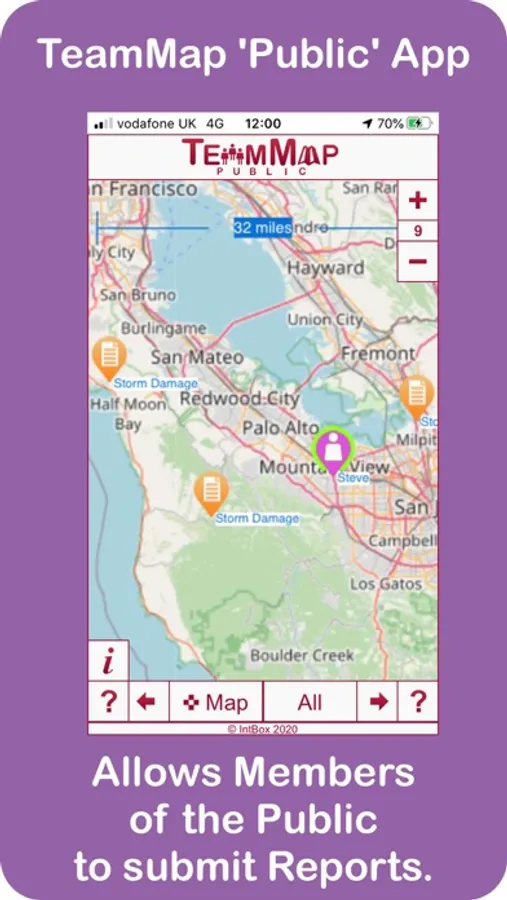 The TeamMap Public app allows reports from the public to be gathered so that they can be used by full members of the TeamMap team carrying out their tasks using the TeamMap app.