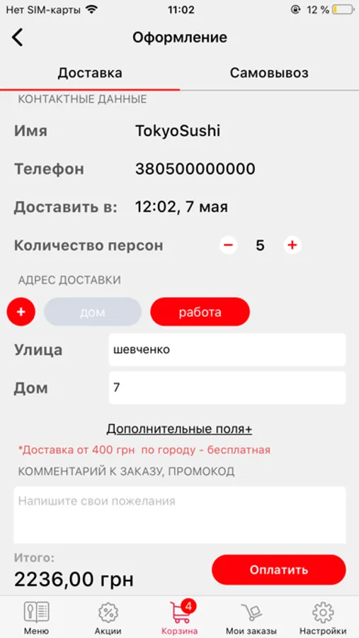 - выбрать удобный для Вас способ оплаты (наличными, картой, картой курьеру)