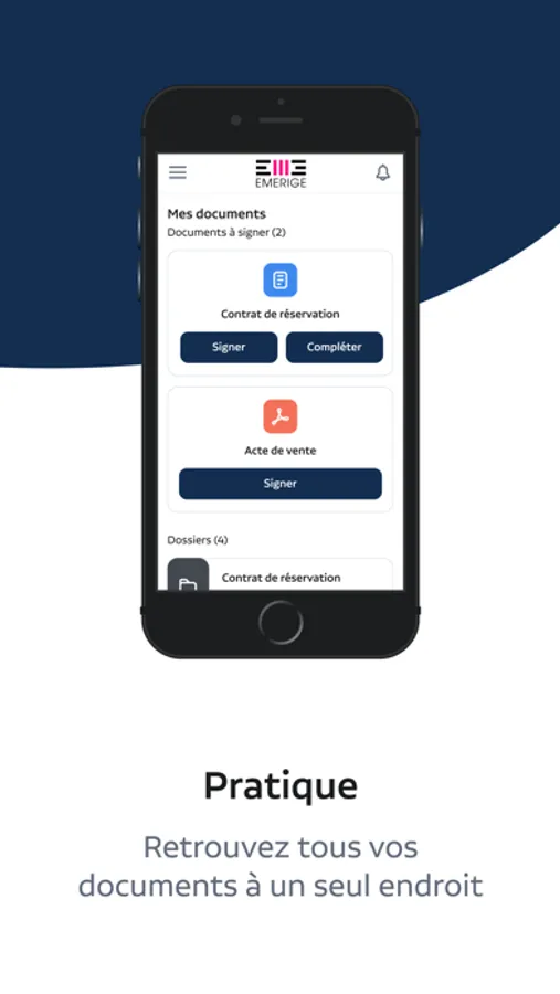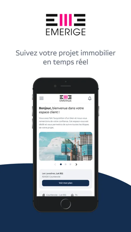 Avec My Emerige, vivez une expérience client simple et personnalisée ! Suite à la signature de votre contrat de réservation, accédez à votre espace client et retrouvez l’ensemble de vos documents personnels et les caractéristiques de votre projet. Complétez votre dossier, suivez les étapes en cours et celles à venir, consultez en image l’actualité de votre résidence à distance, échangez facilement avec vos interlocuteurs Emerige. De la réservation à la livraison de votre logement, Emerige vous accompagne à chaque étape de votre achat !