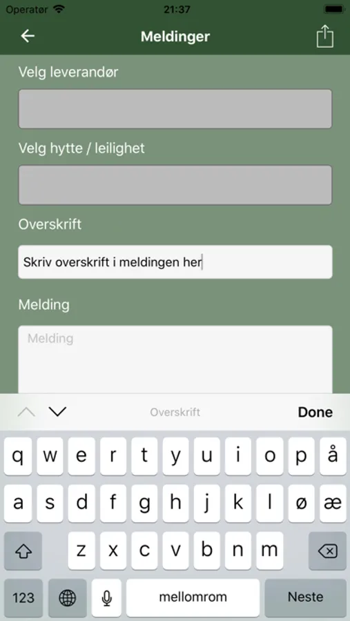 Hyttetjenester Leverandør app er utviklet for brøytere og andre tjenesteleverandører som benytter Hyttetjenester-systemet når de er ute i traktorene sine.Når hytteeiere eller andre personer melder ankomst til hytta eller rekvirerer andre tjenester til hytta, får brøyteren oversikt i kartet sitt over hvor og når de forskjellige tjenestene skal leveres.