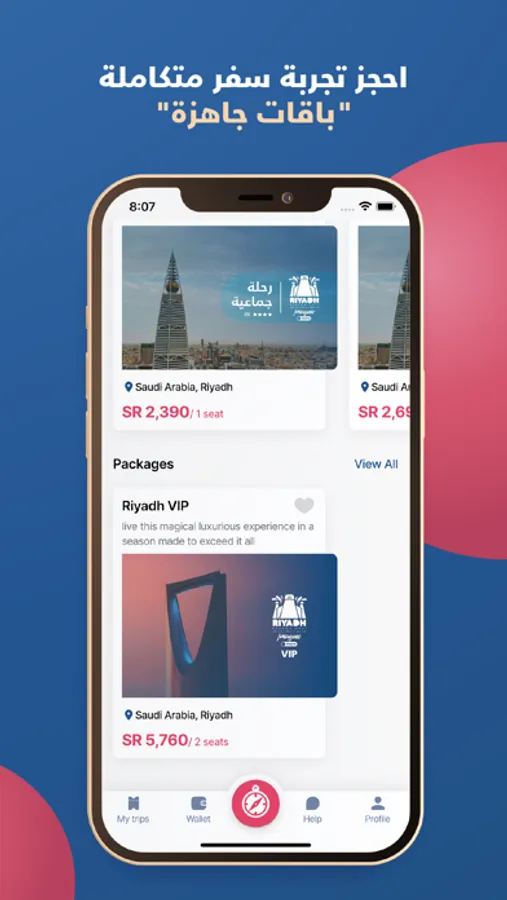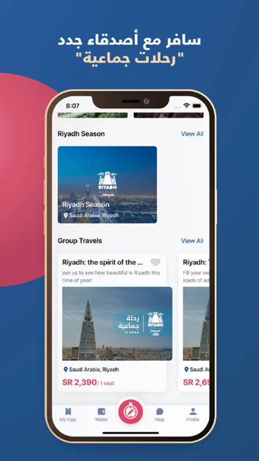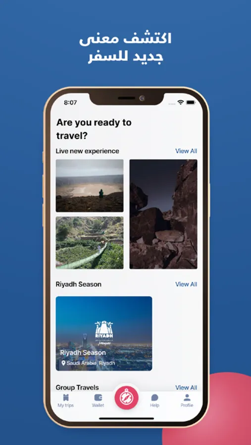 احجز رحلتك السياحية القادمة عبر تطبيق ترافل إت في المملكة وخارجها. نقدم هنا رحلات جماعية وباقات سفر خاصة تلبي متطلباتك وحسب ميزانيتك. ابحث في مختلف الرحلات الجماعية الشاملة بما يناسب رغباتك وميولك، والتاريخ الذي تريد. عش مغامرتك القادمة وانغمس في الثقافات العالمية، وشارك تجربة السفر هذه مع أصدقائك.