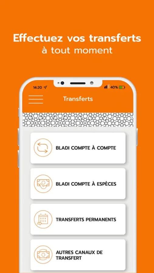 L’application mobile de Chaabi Bank vous offre une multitude de fonctionnalités pour accéder à votre Espace Client à distance en toute sécurité, 24h/24 et 7j/7.