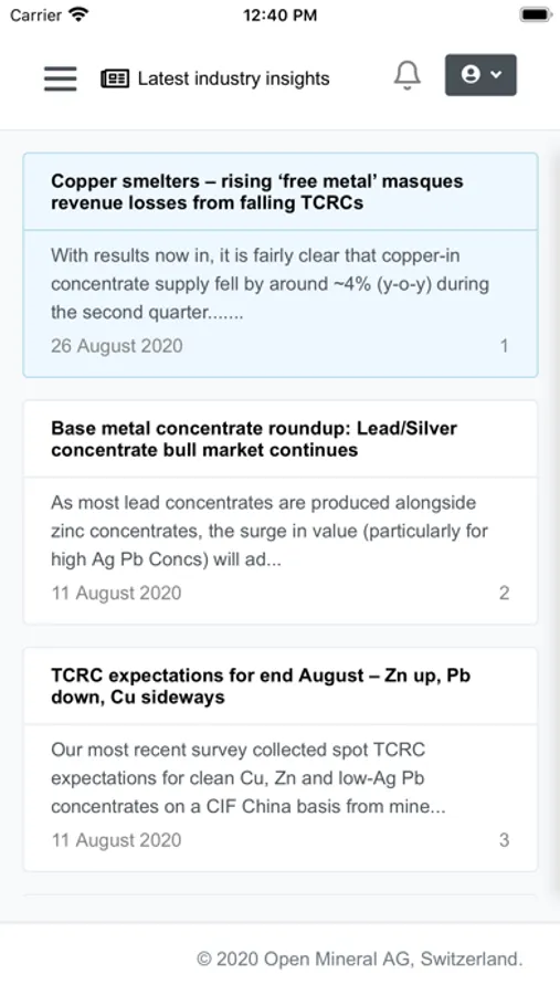 Commodity trading goes mobile with Open Mineral Exchange. Browse Copper, Lead, Zinc, Silver, Gold and other base metal products, make bids. Use realtime concentrate calculator to estimate the value of your product. Read exclusive industry news, insights, research and analytics articles, discover trading commercial terms at the palm of your hand and on-the-go. Enjoy a freedom of mobile trading as you never knew before with Open Mineral Mobile.