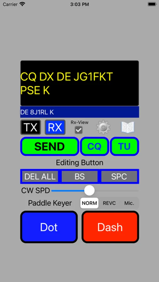 Input "QRZ DX" by Touch Keyer or Straight Key.