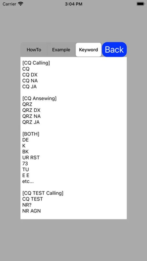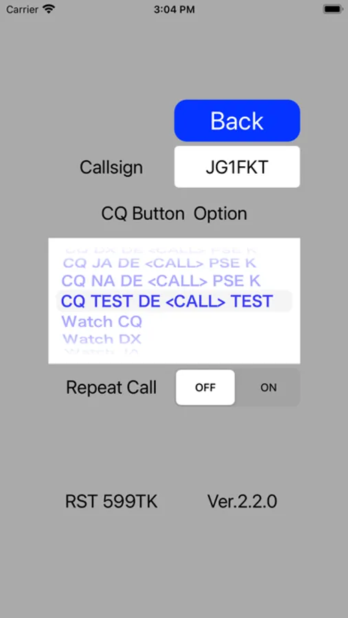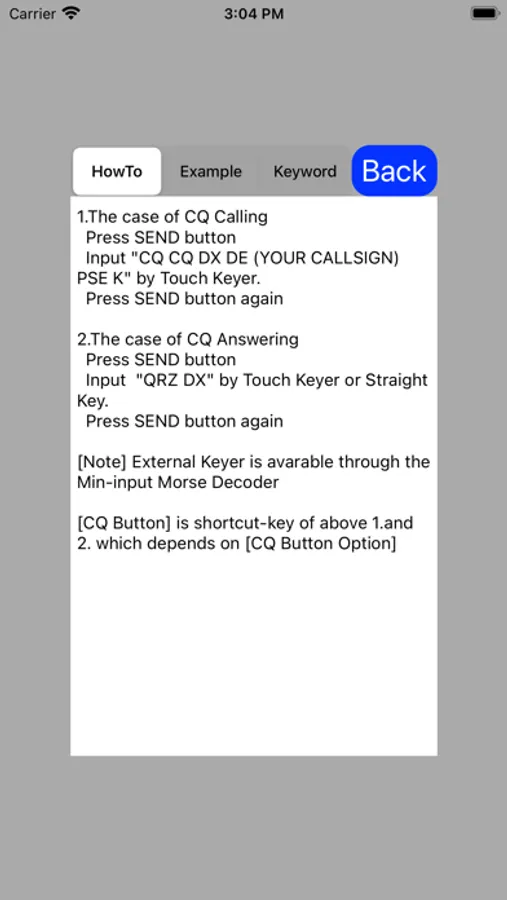 Input "CQ CQ DX DE (YOUR CALLSIGN) PSE K" by Touch Keyer.