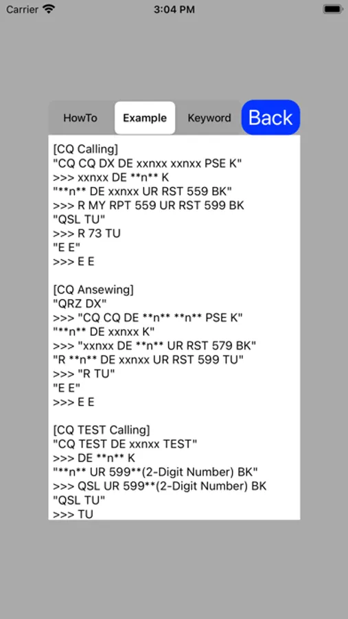 "CQ CQ DX DE xxnxx xxnxx PSE K"