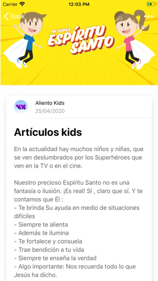 Aliento Kids surgió en el año 2008 como una herramienta para los niños en edad escolar; muy útil para padres y tutores a fin de guiarlos en el camino de la fe en Dios.