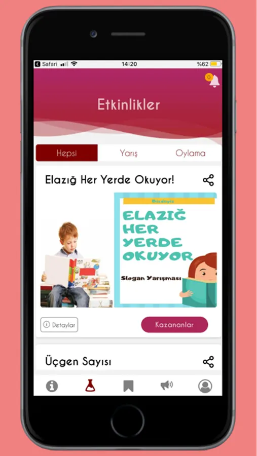 Elazığ Etkinik uygulaması ile etkinliklere katılabilir ve oylama yapabilirsiniz. Katıldığınız etkinlikte oylama da yüksek beğeni alırsanız, ödüller kazanalirisiniz.