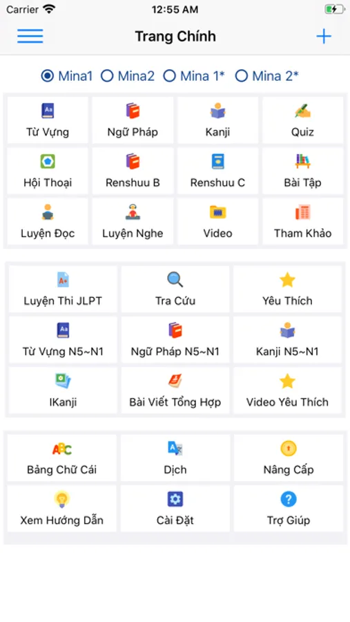 + Đầy đủ từ vựng, ngữ pháp, kanji, luyện đọc, luyện nghe, kaiwa, mondai, renshuu B, renshuu C, video...