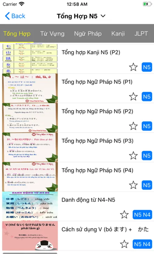 + Bao gồm từ vựng, ngữ pháp, kanji sắp xếp theo trình độ N5, N4