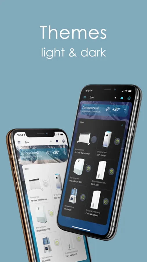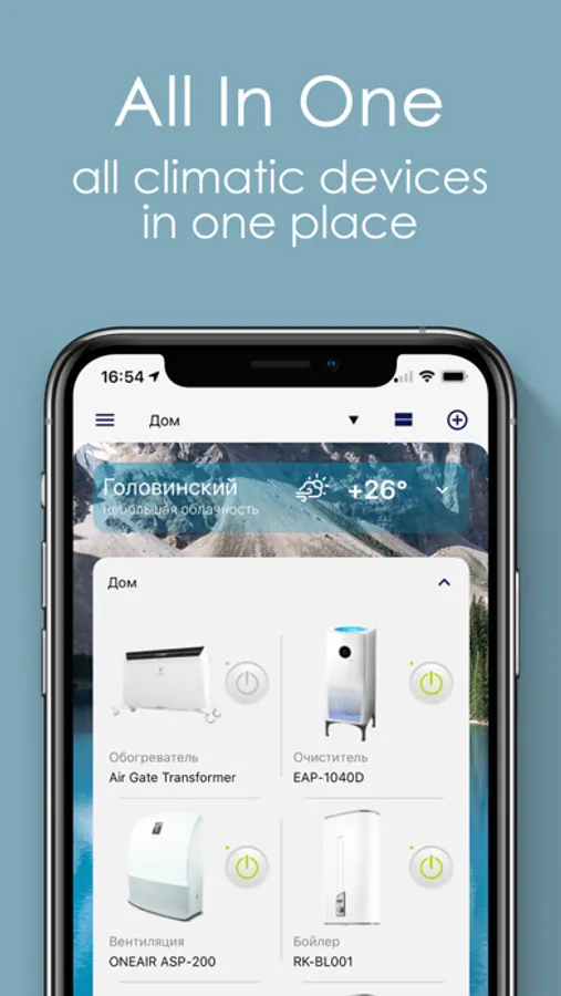 One app for all climatic appliances: air conditioners, water heaters, air heaters, convection heaters, air purifiers, air humidifiers, weather stations, etc.