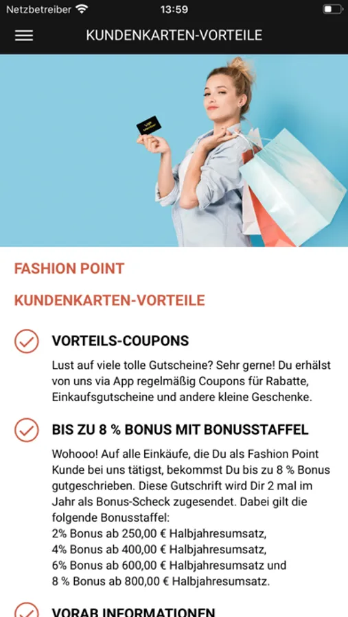 Mit der Fashion Point App hast Du alle Vorteile als Fashion Point Kunde und Deine digitale Kundenkarte immer auf dem Smartphone dabei.