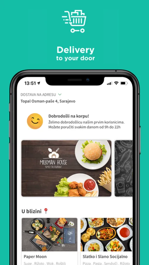 Korpa is not only a food delivery but high tech and logistic company that started with door-to-door delivery, not just food but all goods. With our easy-to-use application, you can see and track our deliverer as well as the status of the order. In just a few minutes you will be able to create order while in the next 20-50min you can expect it at your address. Each step is followed by the notification so you you want to have to worry about time checking.