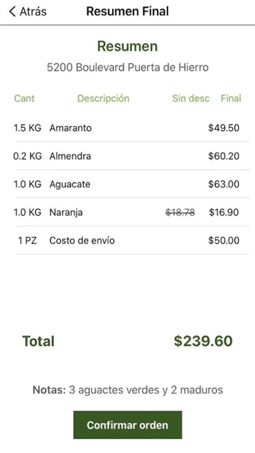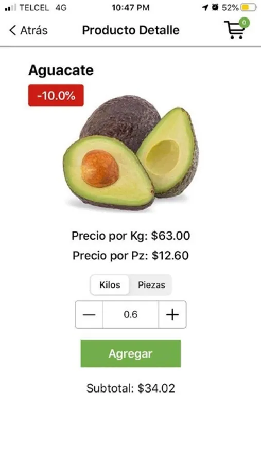 - Fácil uso que te permita visualizar los productos, agregarlos a un carrito de compras por piezas o por kilogramos