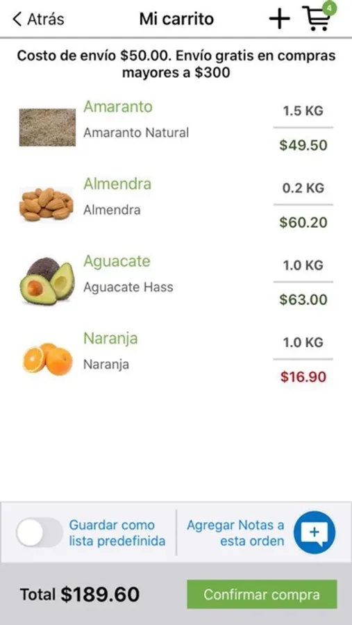 - Tener listas precargadas de los productos que normalmente consumes