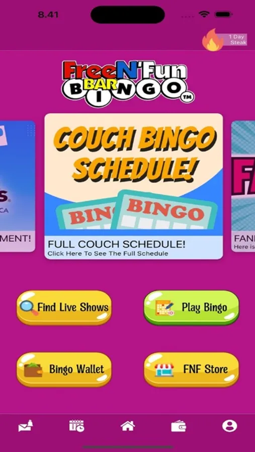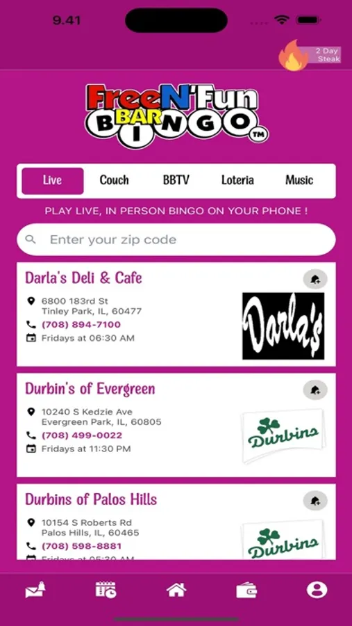 This is free bingo app that allows players to log in via a secure website and play along at home with a host online.