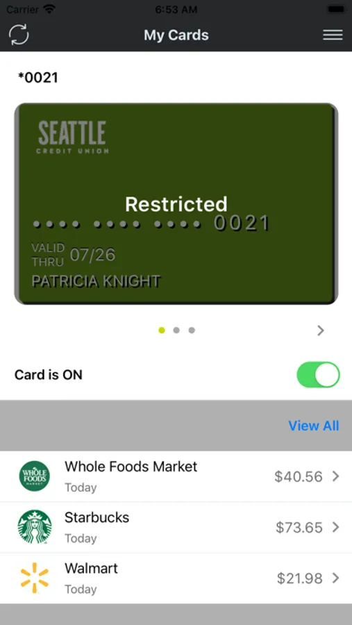 Seattle Credit Union Card Control helps you manage your Seattle Credit Union debit and credit cards by giving you the ability to define when, where and how your cards are used. Card Control works as a companion to the Seattle Credit Union app.