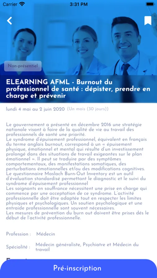 Retrouvez l'ensemble des formations dispensées par le groupe Dopamine Formation à destination des professionnels de santé. Grâce à l'appliclation vous pourrez rechercher les thématiques qui vous correspondent, et vous pré-inscrire en quelque clics.