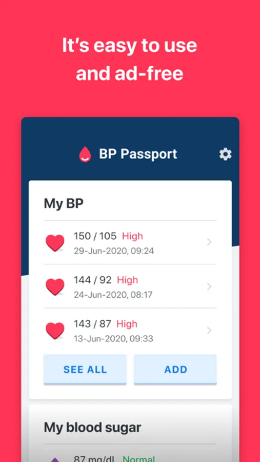 BP Passport is the best app to track your blood pressure, blood sugar, and medicines — completely free. No advertisements.