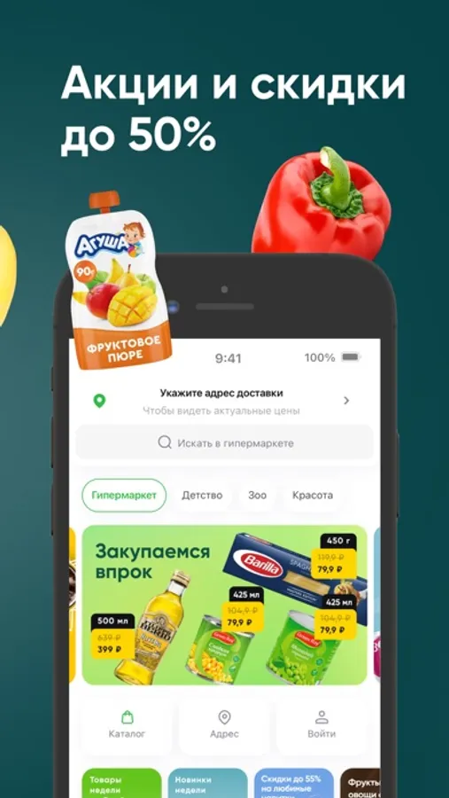 Пользуйтесь бесплатной доставкой продуктов и зоотоваров домой, в офис и на дачу, скидками и акциями. Заказывайте продукты и другие товары, не выходя из дома, онлайн в мобильном приложении.