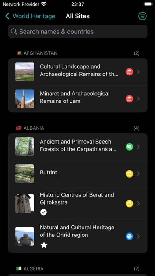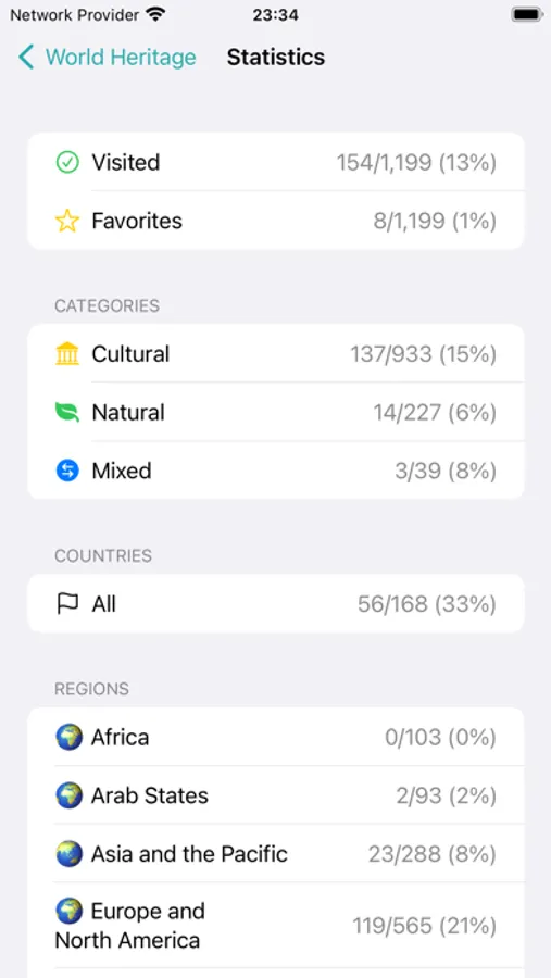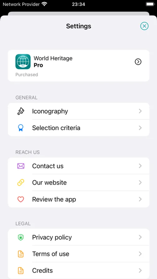 * World Heritage is free to use, but visited and favorites lists are limited to 5 sites each. Import from photos can be used, but the sites found will not be saved. Purchase World Heritage Pro for unlimited use.