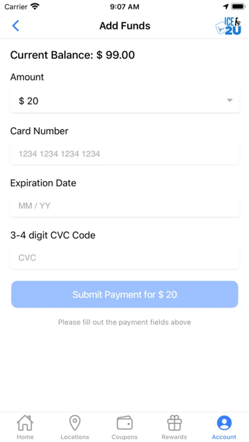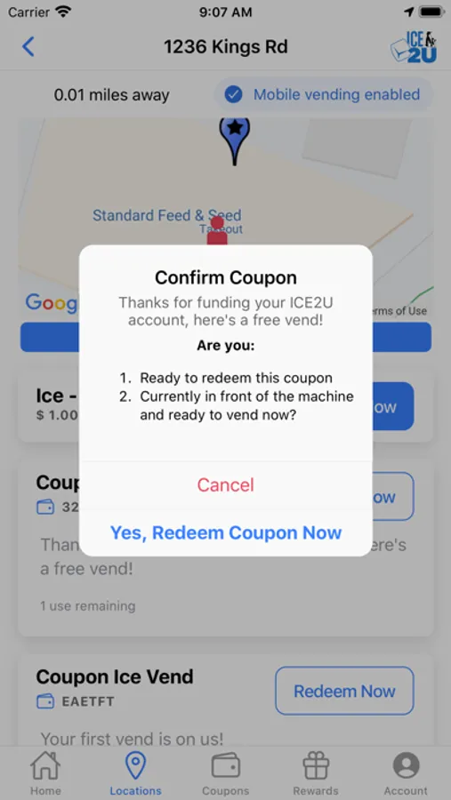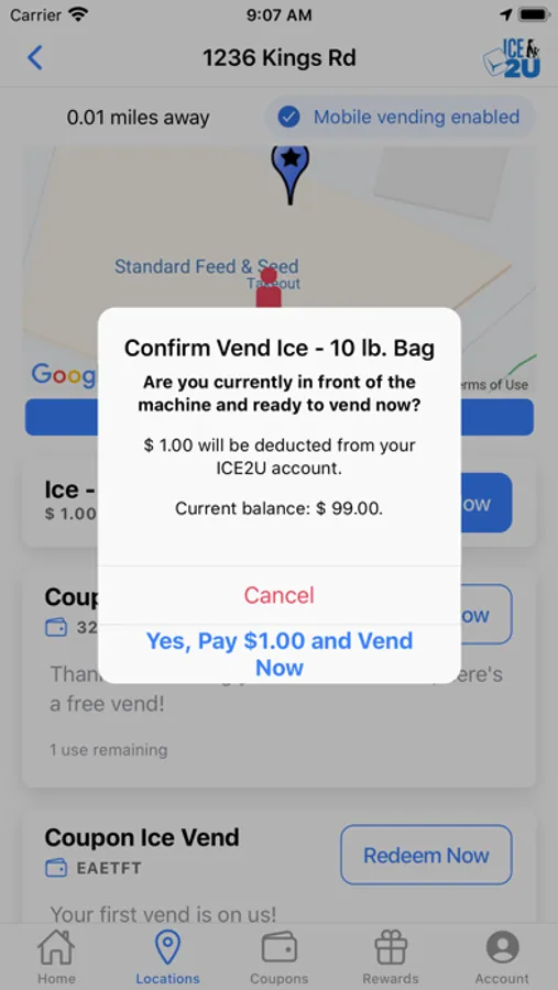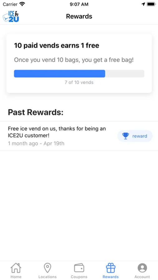 The ICE2U app will allow you to purchase ice within the app and earn reward points towards free ice at all participating Twice the Ice and Partner locations. Load your app with funds, visit a participating machine and vend your bag of Ice right from the app without ever having to touch the machine. For every 10 bags purchased you will get 1 bag for free. Find the nearest Twice The Ice vending machine from your current location and get driving directions right from the app. Twice the Ice locations provide fresh bagged ice 24/7 and fresh filtered or purified water a participating locations. A Healthy lifestyle starts with fresh products. Twice the Ice ensures that you are receiving fresh, high quality ice & water any time of day. Now you can use a convenient App to find the TTI in your community so you can taste the difference.