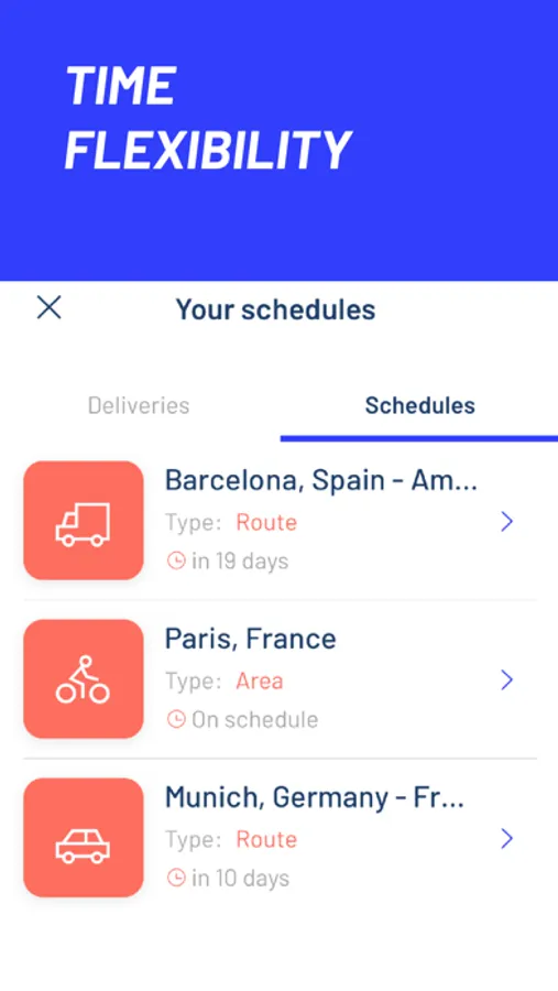 Deliver your package in your free time, weekends or during holidays, and even at night.