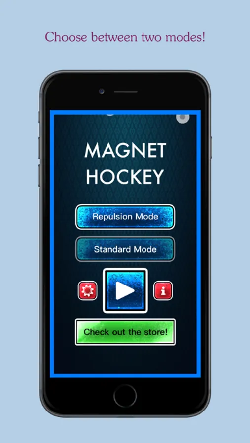 Choose from either "Standard Mode" or "Repulsion Mode". Repulsion mode has an outer protective field around the players' mallets which will repel magnets moving at low speeds.
