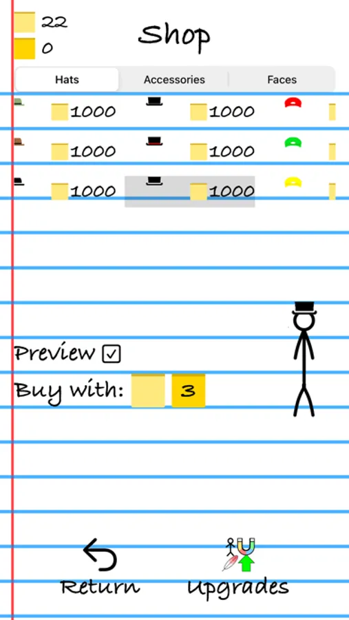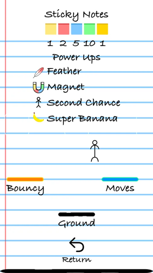 Change the look of your Stick-figure with wacky accessories or stylish hats. Upgrade and unlock new power-ups to go further in Endless Mode. Get a free bundle of 150 Sticky Notes once every day.