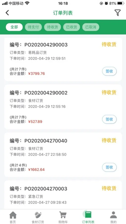 APP食材订货