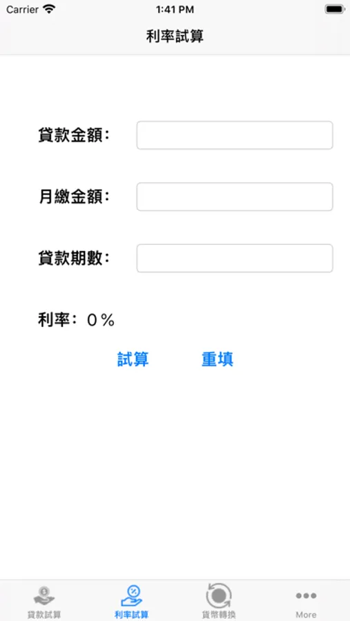 簡易型的貸款試算, 推算利率, 貨幣轉換。
