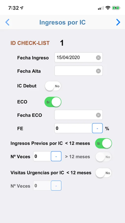 Contiene tanto el checklist reducido, como el completo (este último para ingreso, alta y postalta).