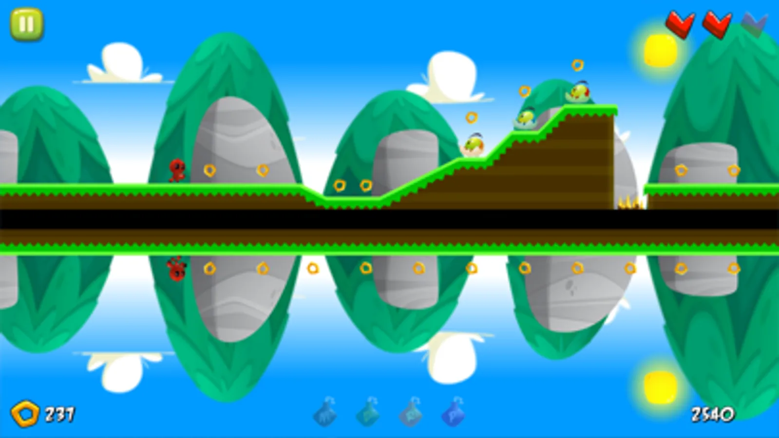 Run Run Robot 2: Reflector's Revenge is a twist on the classic endless runner! Guide the Robot and his doppleganger to safety as they jump and roll through an endless landscape avoiding all manner of hazards such as lava and spikes! Bash the ground enemies who get in the Robots' way, and bounce on flying enemies to reach higher platforms! Grab the power-ups to temporarily boost the Robots' abilities, and collect as many coins as you can muster for extra kudos!