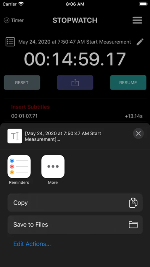 In addition, the stopwatch also provides a function to convert the measured time into text and send it via e-mail or message.