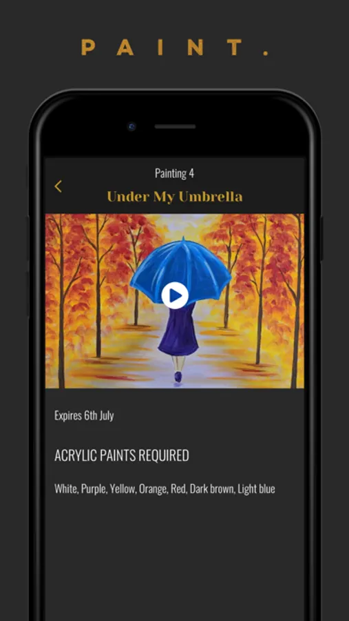 The easy to follow videos are led by our extremely talented artists. They guide you step by step to help you create your very own masterpiece. With a large selection of paintings to choose from, let your inner artist run free.