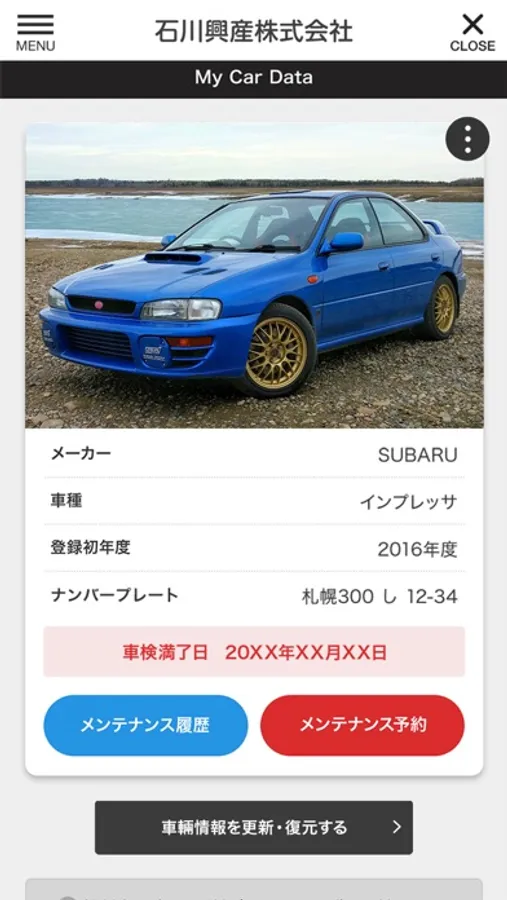 一度店舗へご来店いただきお車の登録がある場合、アプリに必要情報を入力していただくと、ご自身のお車の車検時期などがアプリ上でご確認いただけます!