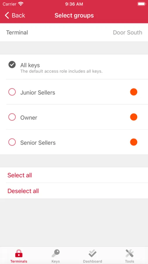 The mobile terminal must have Bluetooth® Low Energy and Near Field Communication (NFC). Transponders are simply read into the app via NFC and can be deleted just as easily. The Dialock terminals are programmed via the mobile terminal using the Bluetooth® Low Energy interface.