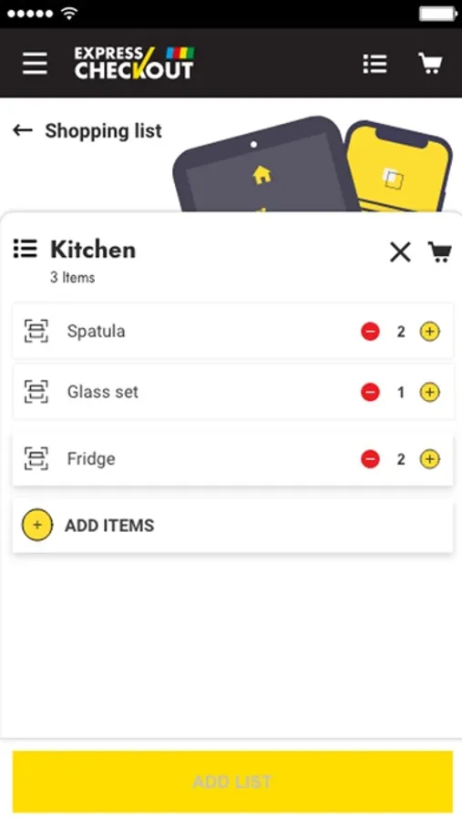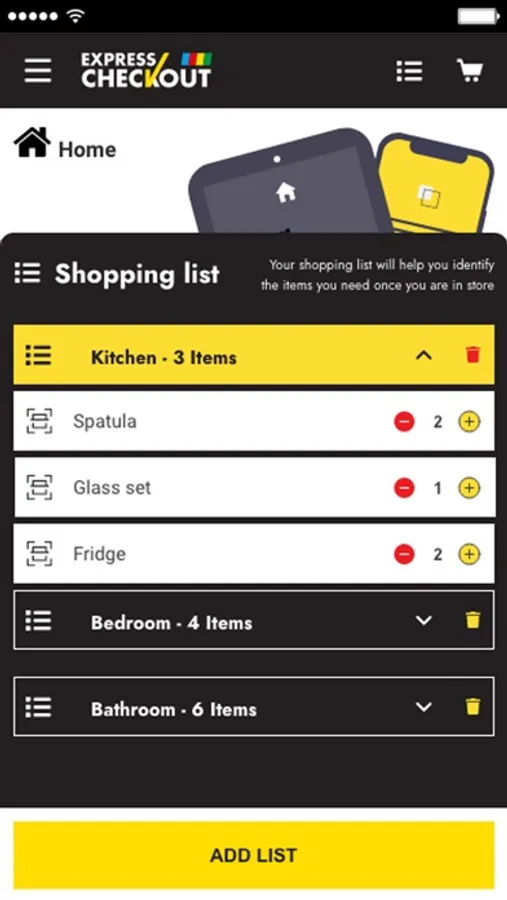 Use the Shopping list feature to preplan your shopping. Once you are in-store, select each item on your shopping list, scan the actual item and it will be added to your basket.